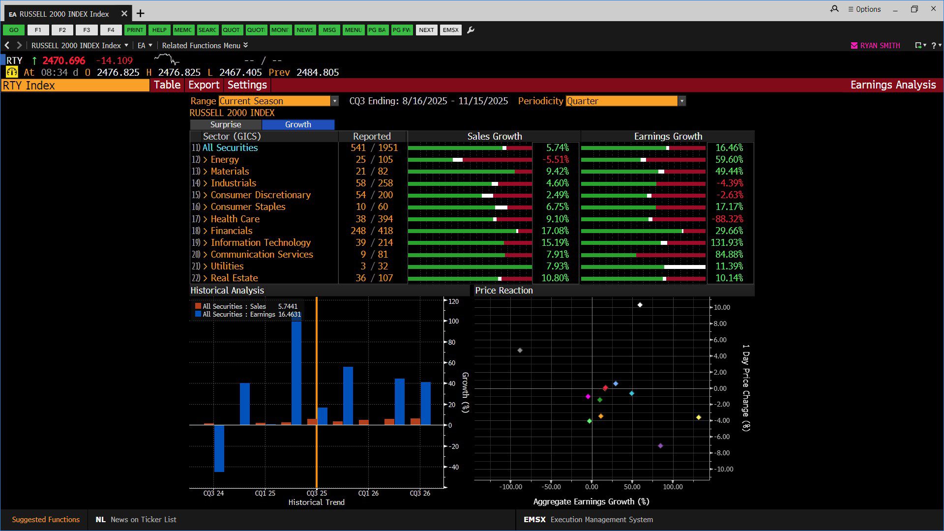 Russell 2000’s Index Earnings Q3 (08/16/2025 – 11/15/2025)