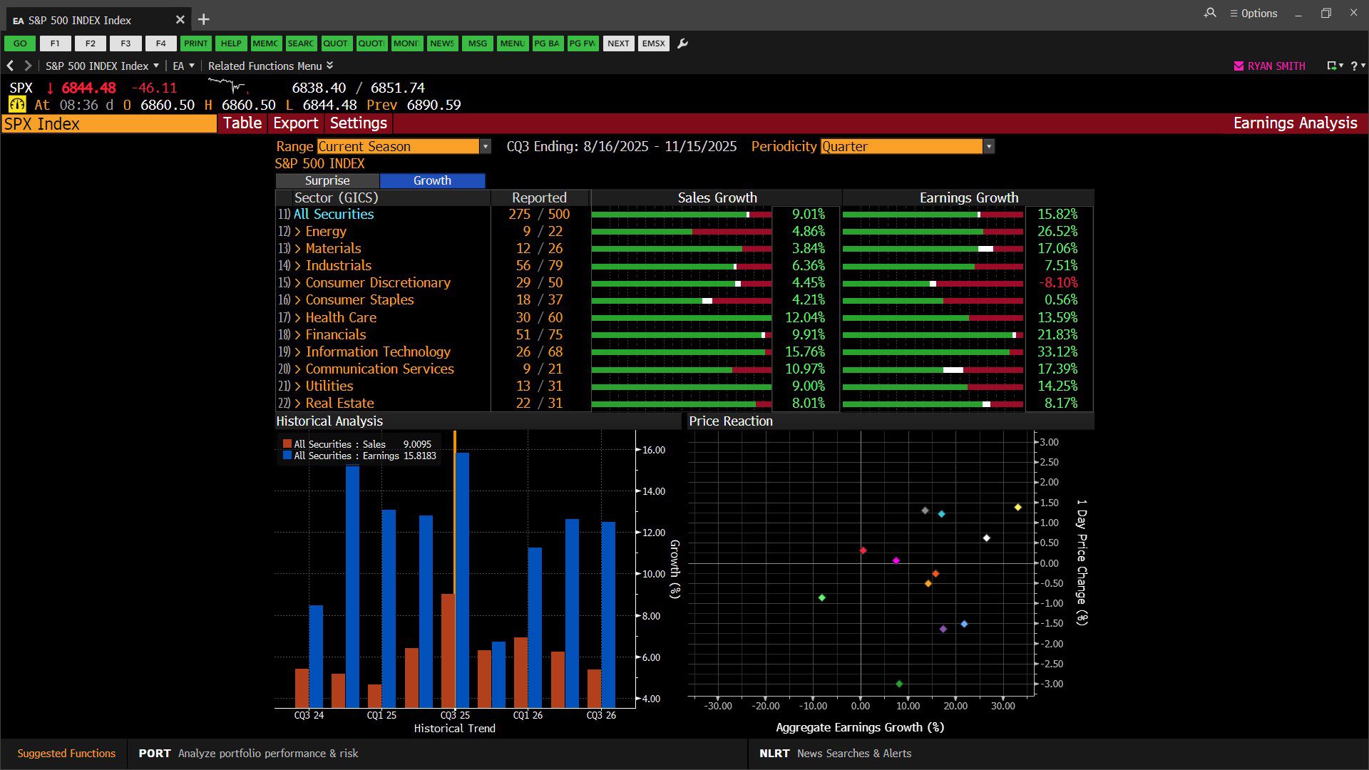 Standard & Poor’s 500 Index Earnings Q3 (08/16/2025 – 11/15/2025)