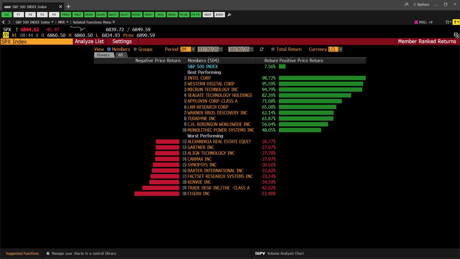 Standard & Poor’s 500 Top 10 Bottom 10 Q3 (07/30/2025 – 10/30/2025)