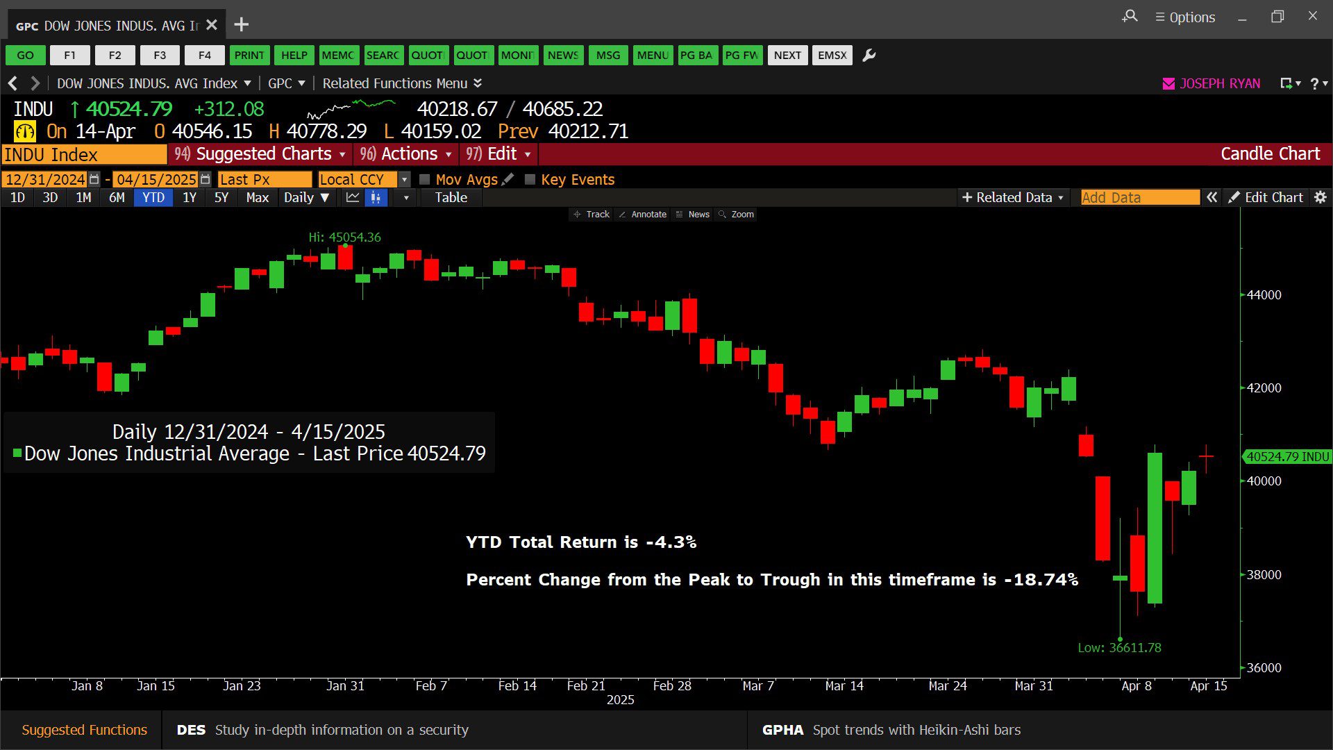 Dow Jones Industrial Average Index – Daily (12/31/2024 – 04/15/2025)