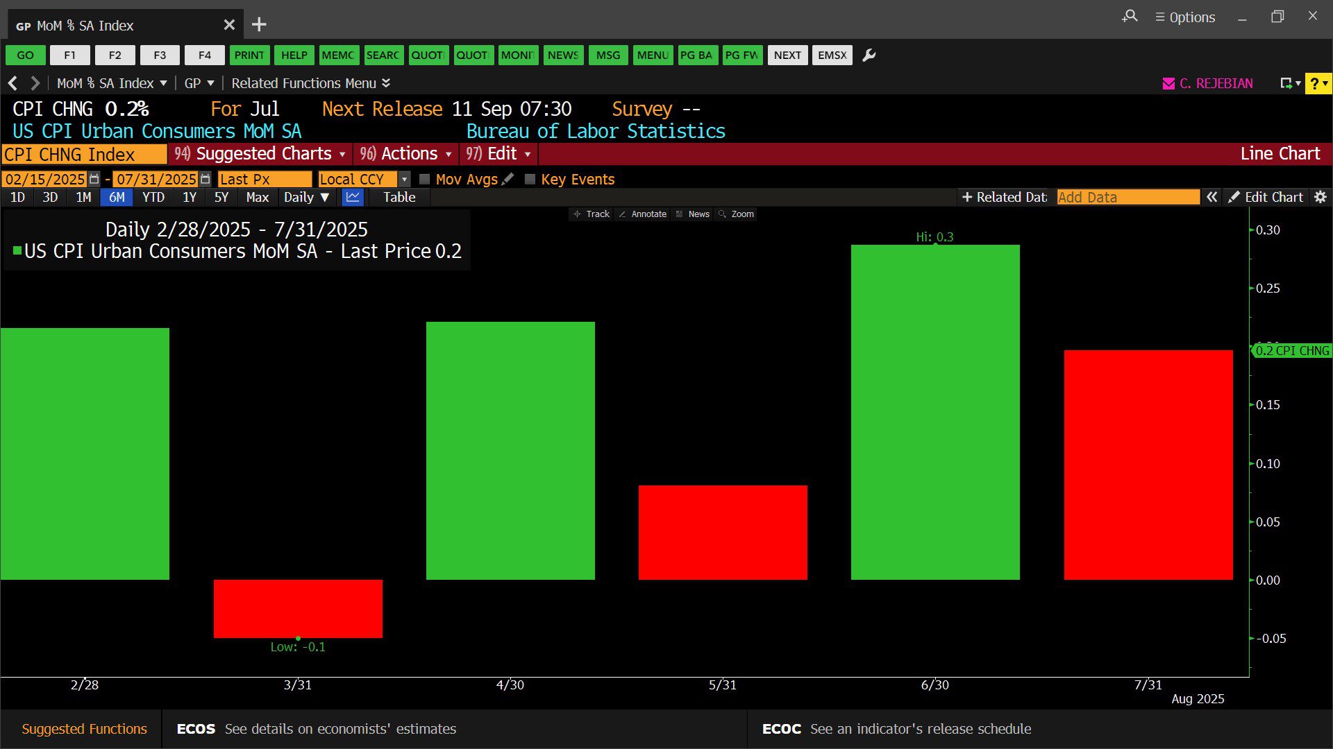 U.S. Consumer Price Index – Urban Consumers Month over Month, Seasonally Adjusted (02/28/2025 – 07/31/2025)