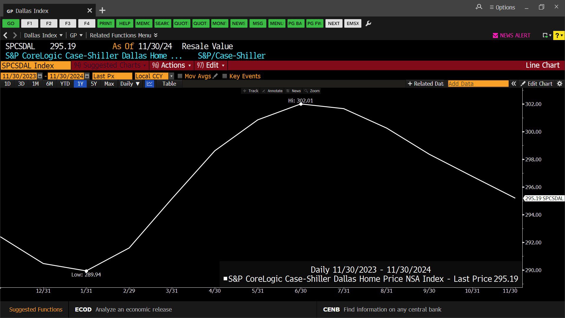 S&P CoreLogic Case-Shiller Dallas Home Price, Non-Seasonally Adjusted, Index (11/30/2023 – 11/30/2024)
