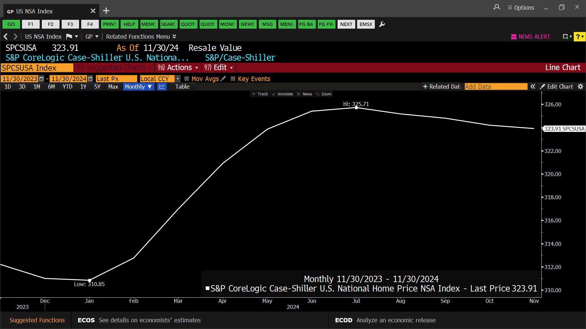S&P CoreLogic Case-Shiller U.S. National Home Price, Non-Seasonally Adjusted, Index (11/30/2023 – 11/30/2024)