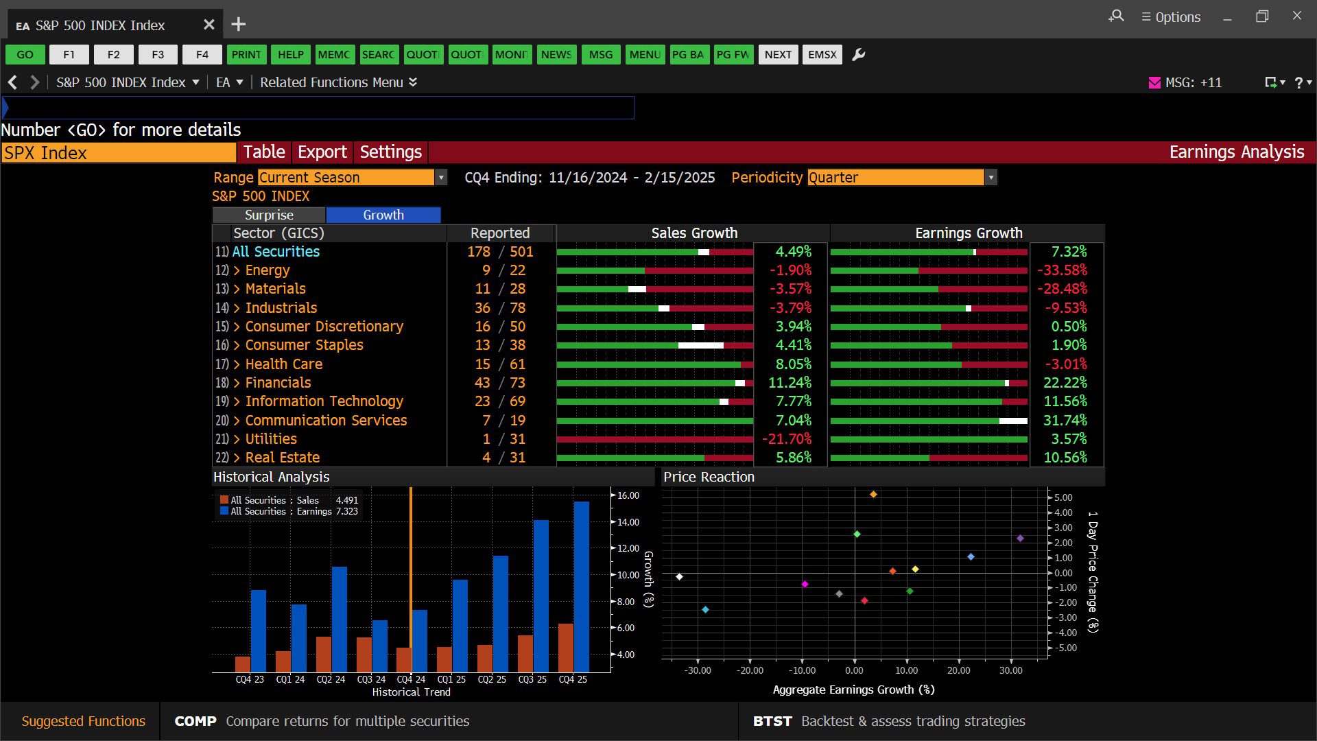 Standard & Poor’s 500 Index – Quarterly Earnings Analysis by Sector (11/16/2024 – 02/15/2025)