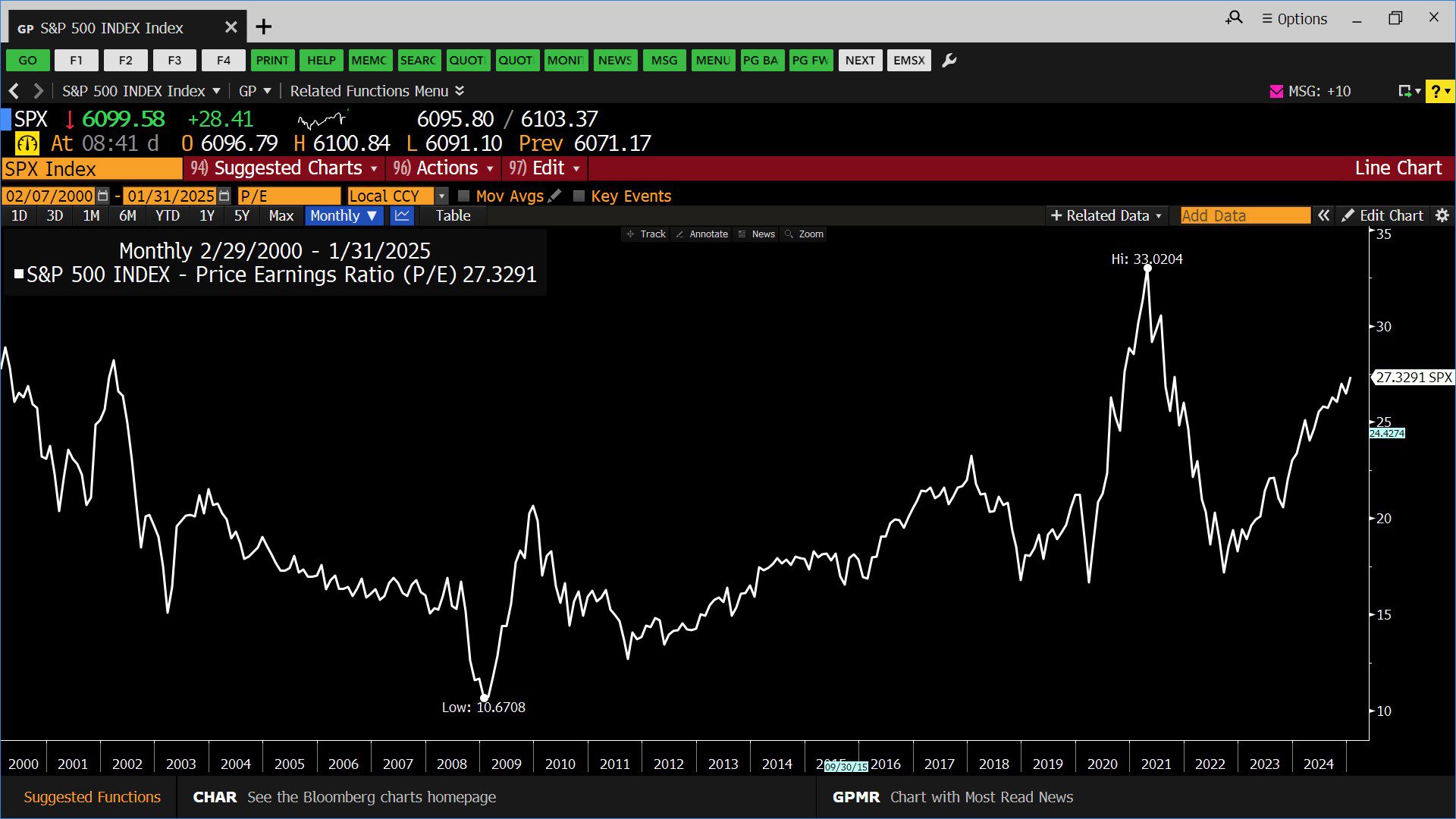 Standard & Poor’s 500 Index – Price/Earnings Ratio (02/07/2000 – 01/31/2025)