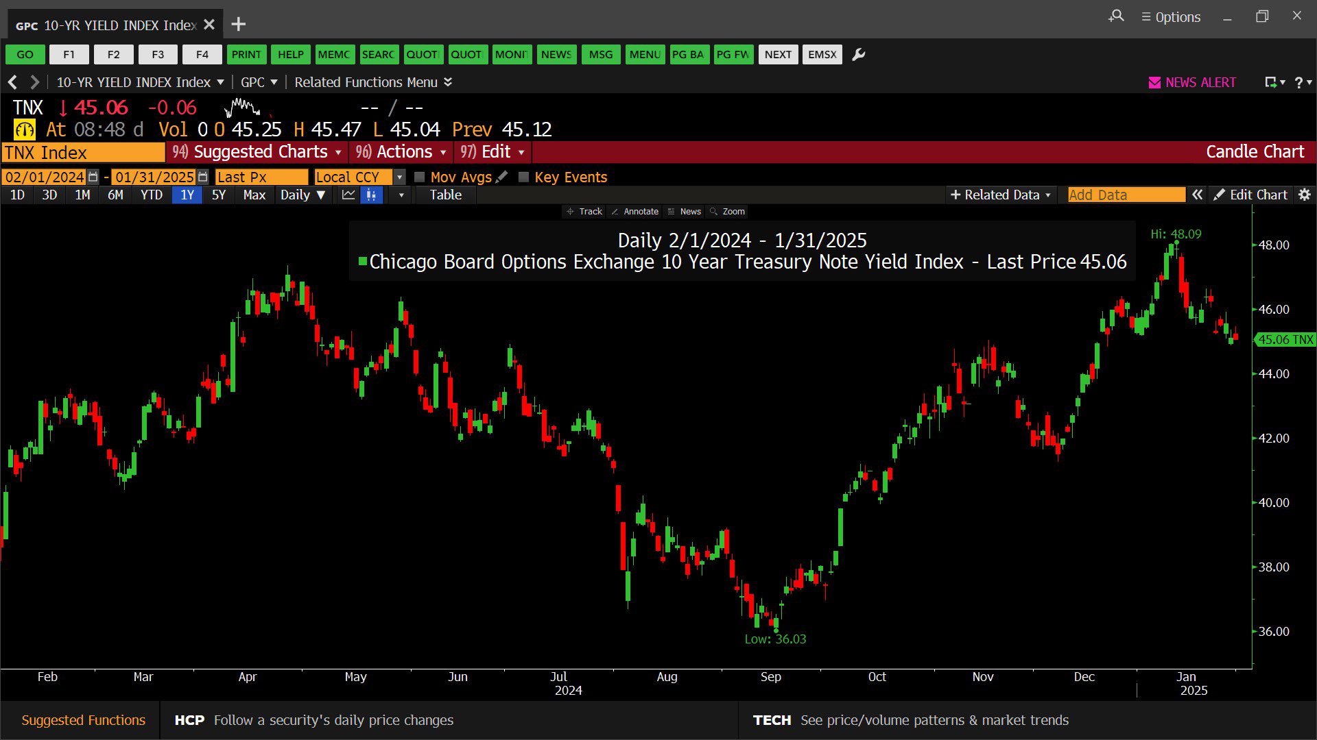 C.B.O.E. 10 Year Treasury Note Yield Index (02/01/2024 – 01/31/2025)