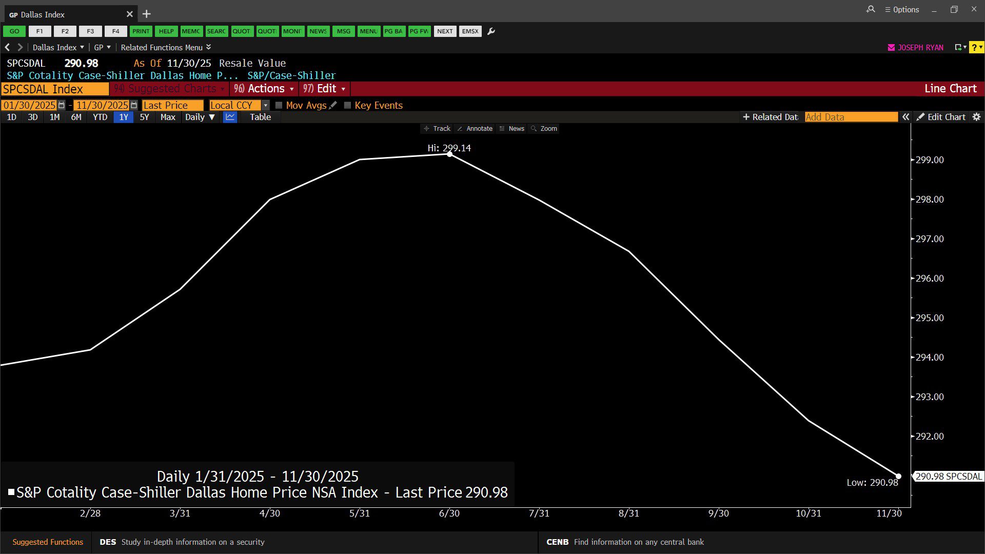 S&P Cotality Case-Shiller Dallas Home Price Index, Non Seasonally Adjusted – Daily (01/30/2025 – 11/30/2025)