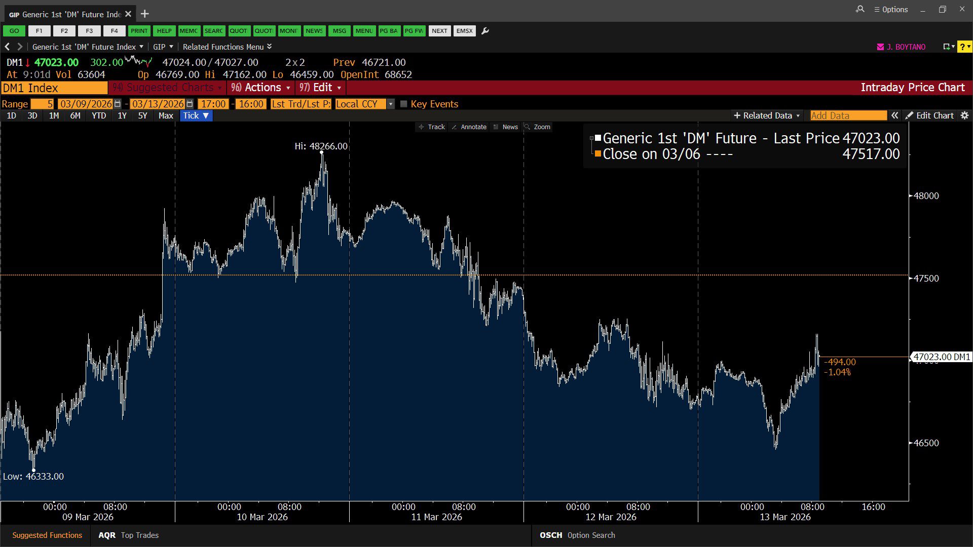 Dow Jones Industrial Average: 5-Day Intraday Volatility(3/9/2026 – 3/13/2026)