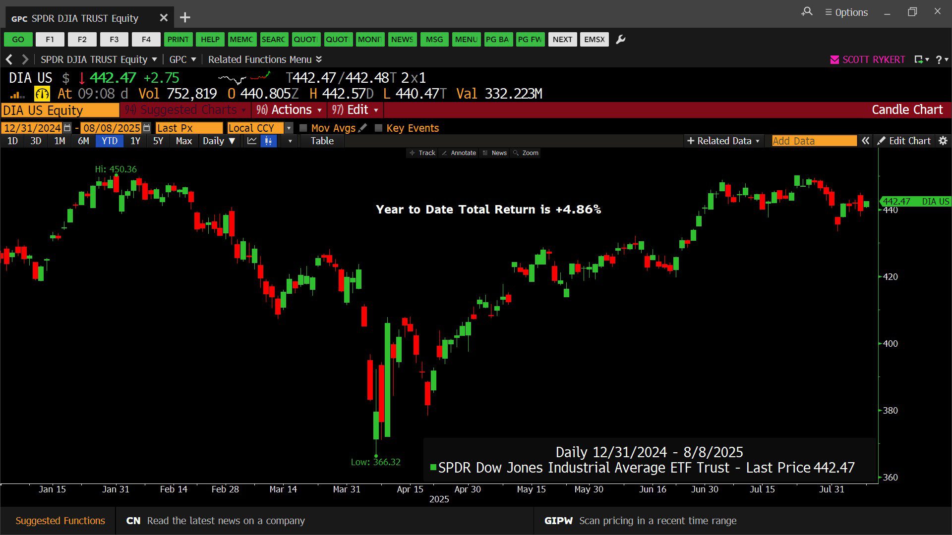 SPDR Dow Jones Industrial Average ETF (Exchange Traded Fund) Trust – Daily (12/31/2024 – 08/08/2025)