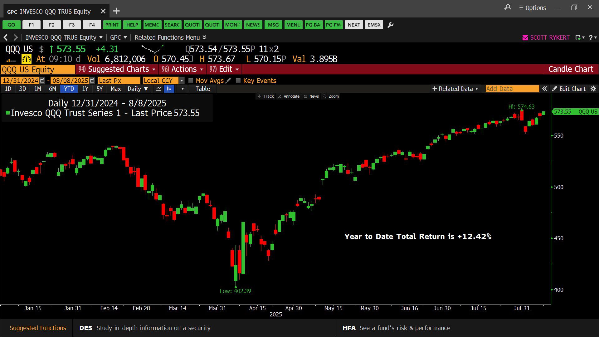 Invesco QQQ Trust Series 1 – Daily (12/31/2024 – 08/08/2025)