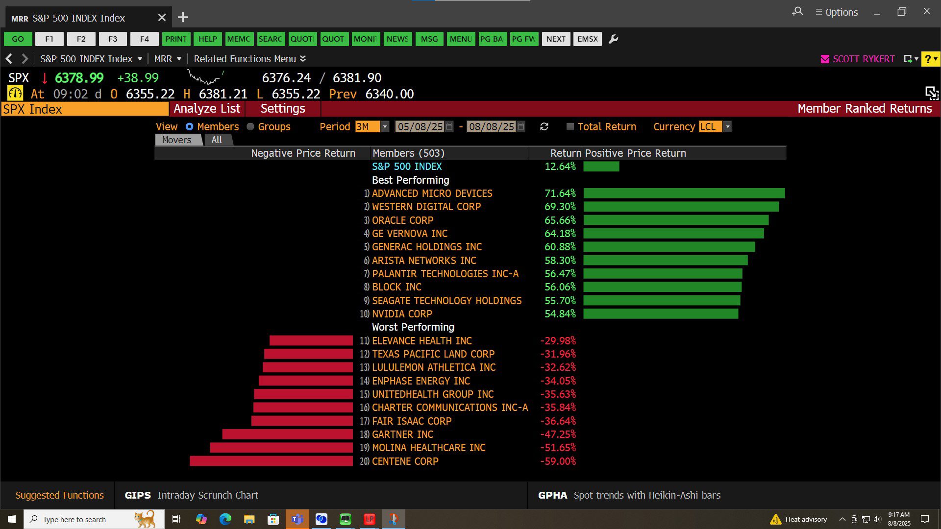 S&P 500 Index – Member Ranked Returns 10 Best Performing & 10 Worst Performing (05/08/2025 – 08/08/2025)