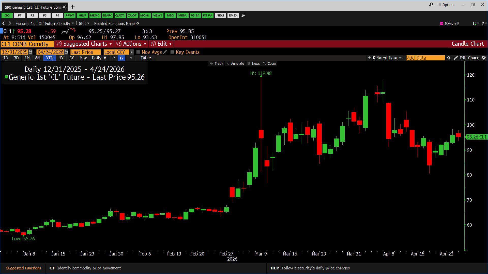 West Texas Intermediate Crude Oil (12/31/2025 – 4/24/2026)