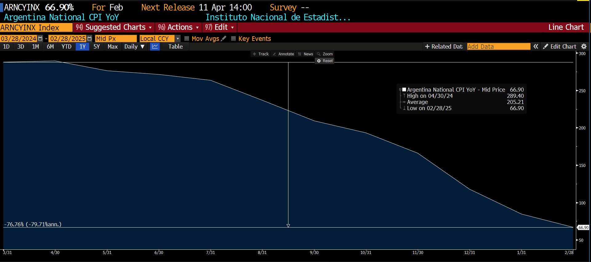Argentina National Consumer Price Index, Year over Year (03/28/2024 – 02/28/2025)