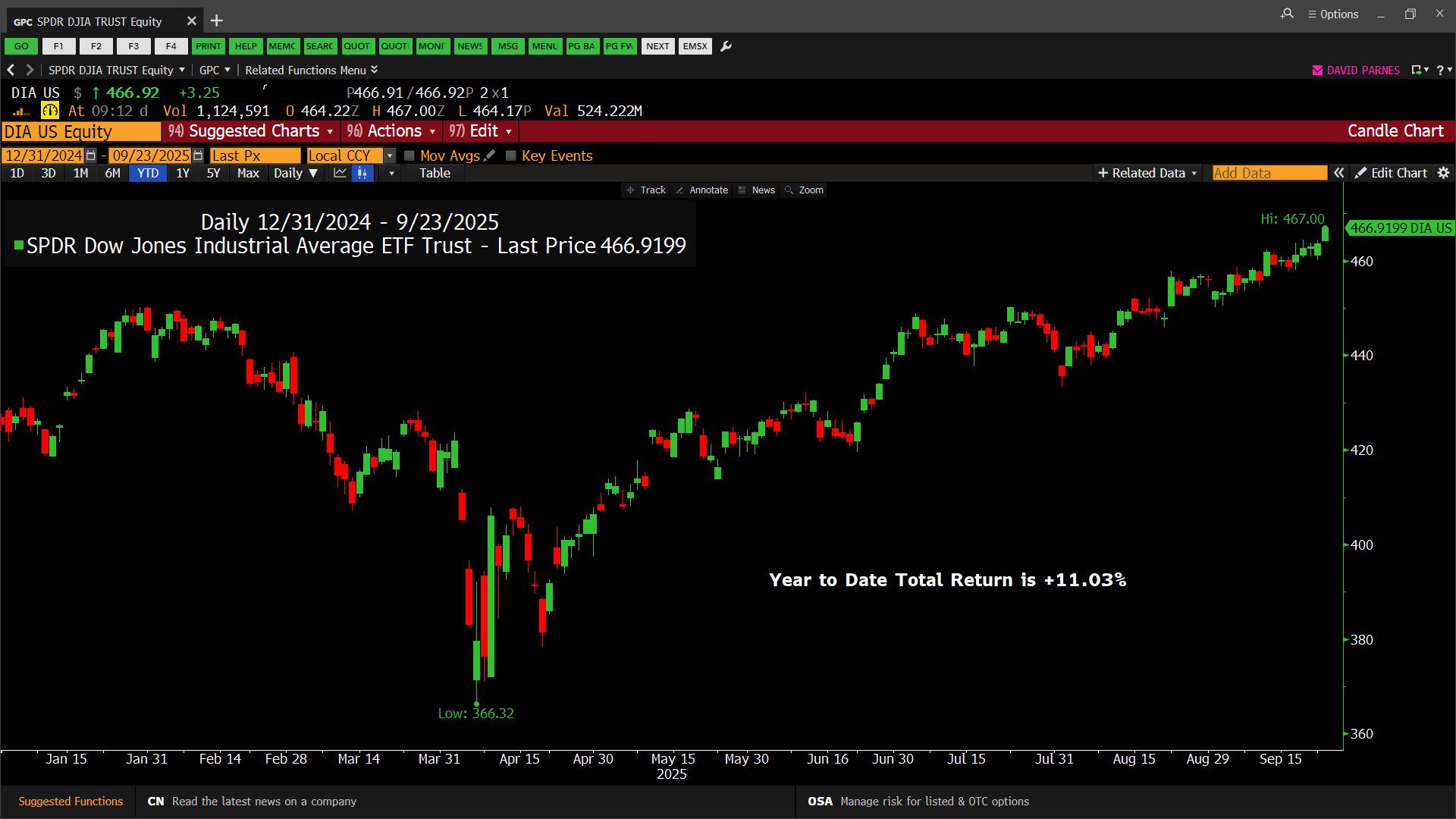 SPDR Dow Jones Industrial Average ETF (Exchange Traded Fund) Trust– Daily (12/31/2024 – 09/23/2025)
