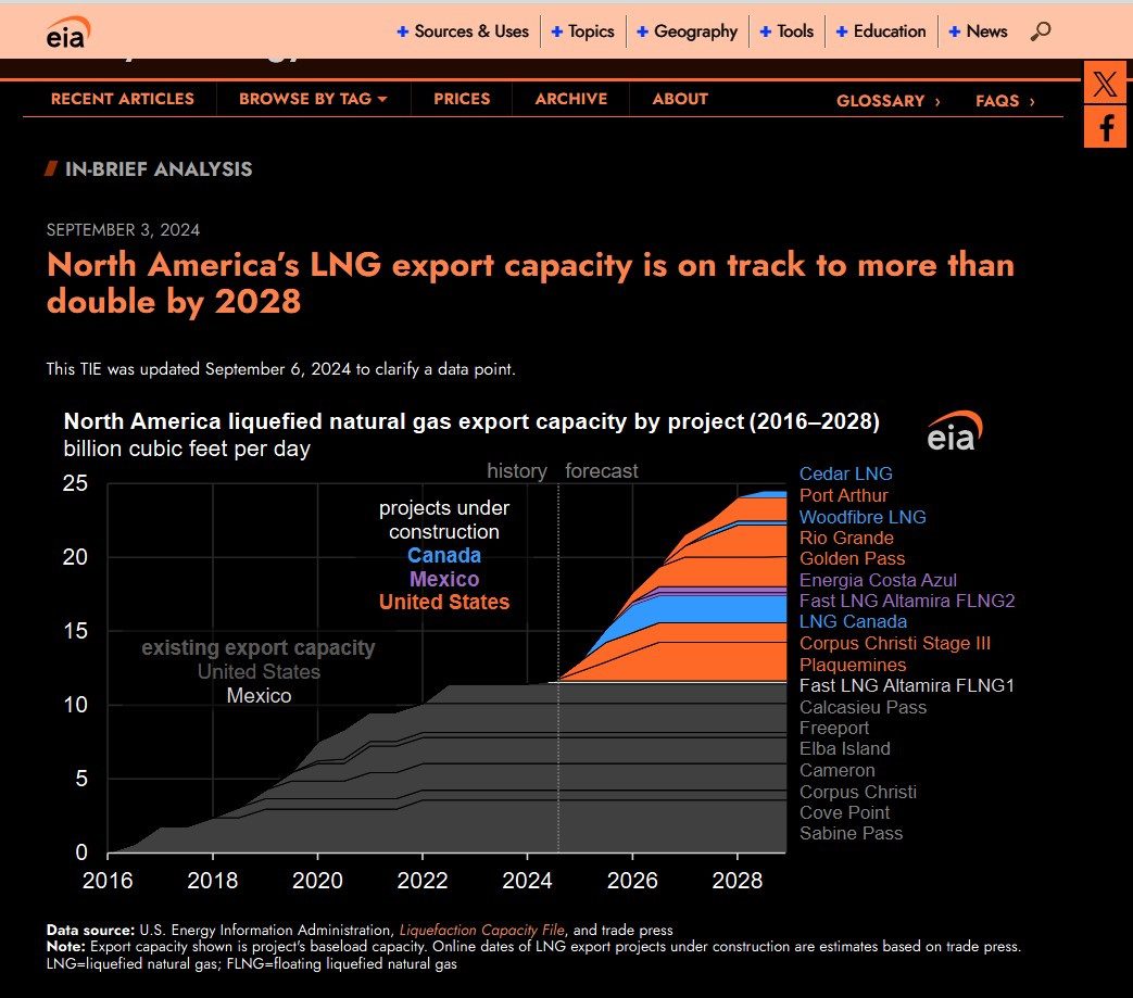 North America’s LNG (Liquefied Natural Gas) Export Capacity is on Track to More Than Double by 2028 (09/03/2024)
