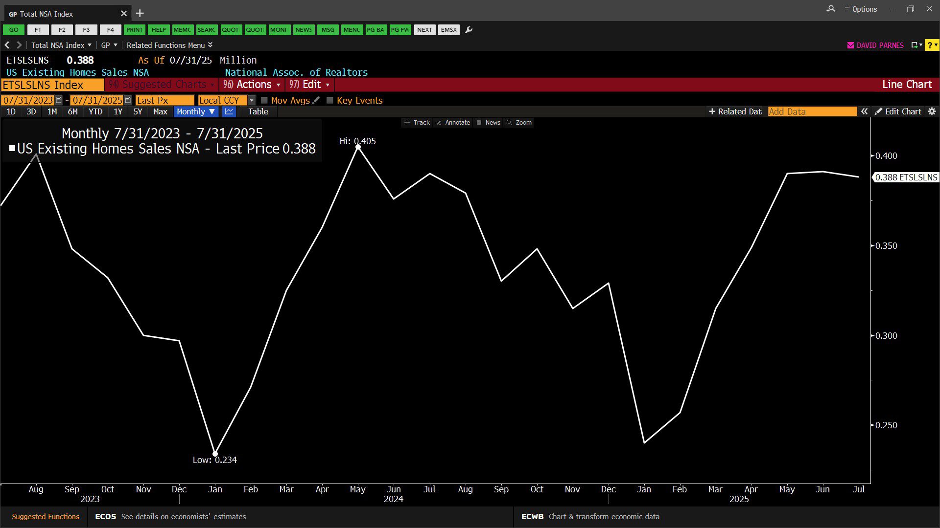 U.S. Existing Home Sales, Non Seasonally Adjusted – Monthly (07/23/2023 – 07/31/2025)