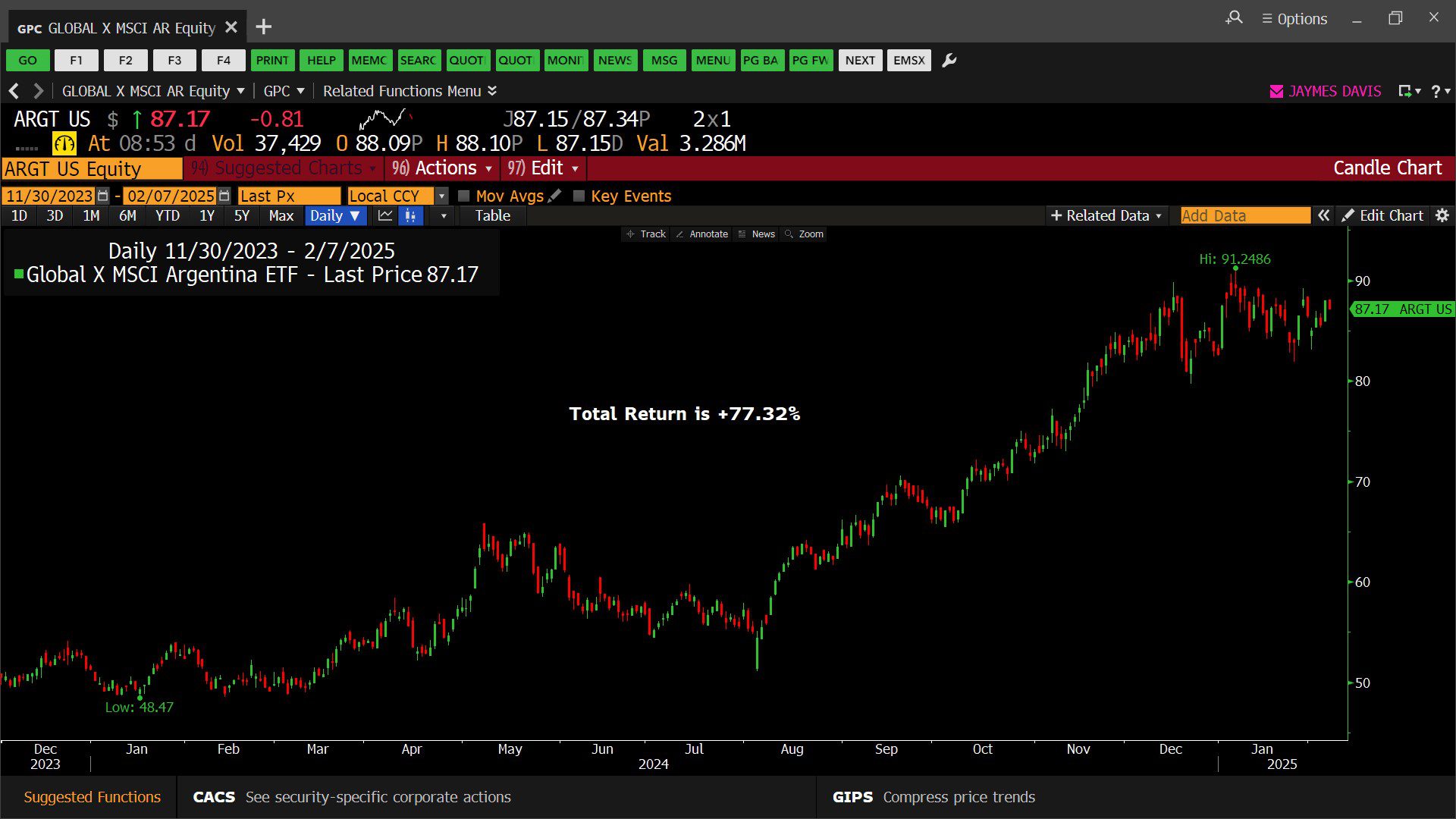 Global X MSCI Argentina (ETF Exchange Traded Fund) – Daily (11/23/2023 – 02/07/2025)
