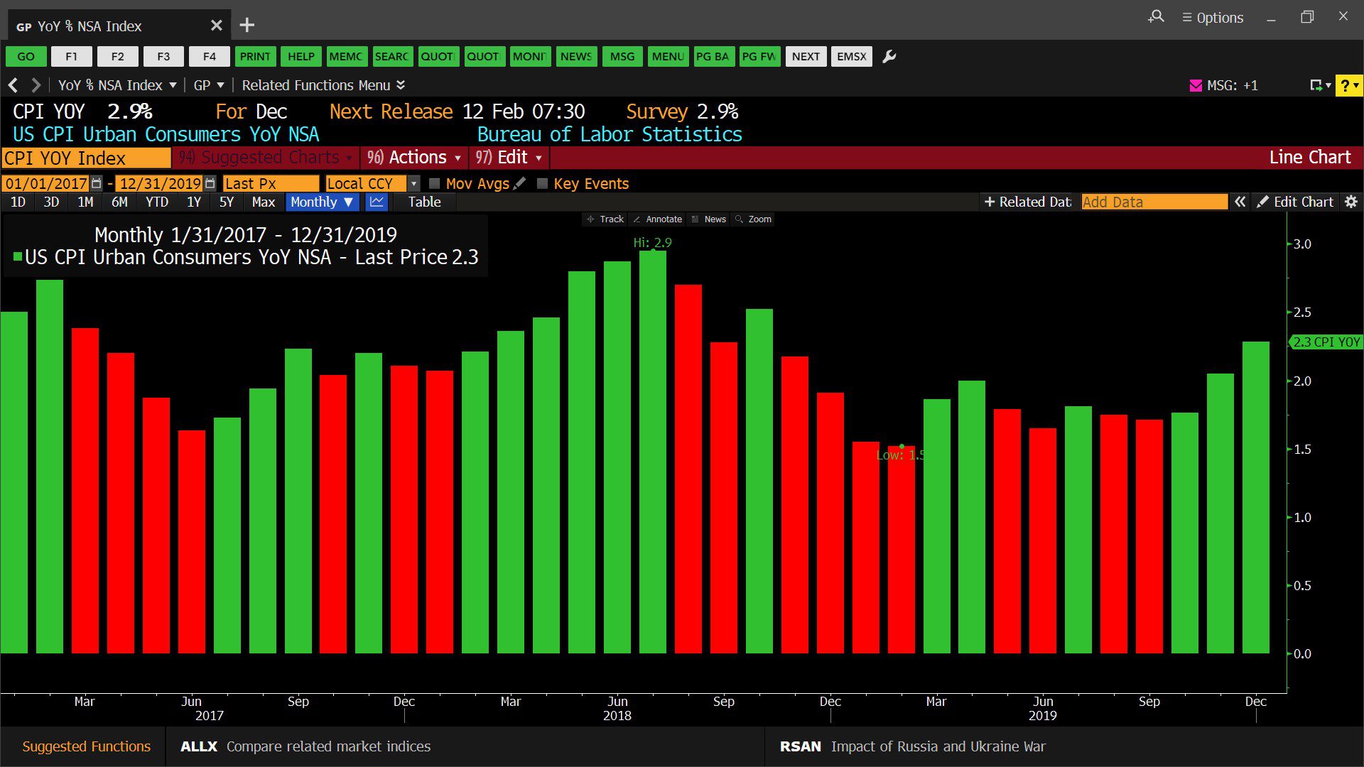 U.S. Consumer Price Index – Urban Consumers Year over Year, Non-Seasonally Adjusted (01/01/2017 – 12/31/2019)