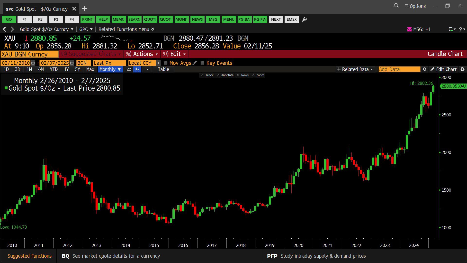 Generic Gold Spot Price by Ounce – Monthly (02/11/2010 – 02/07/2025)